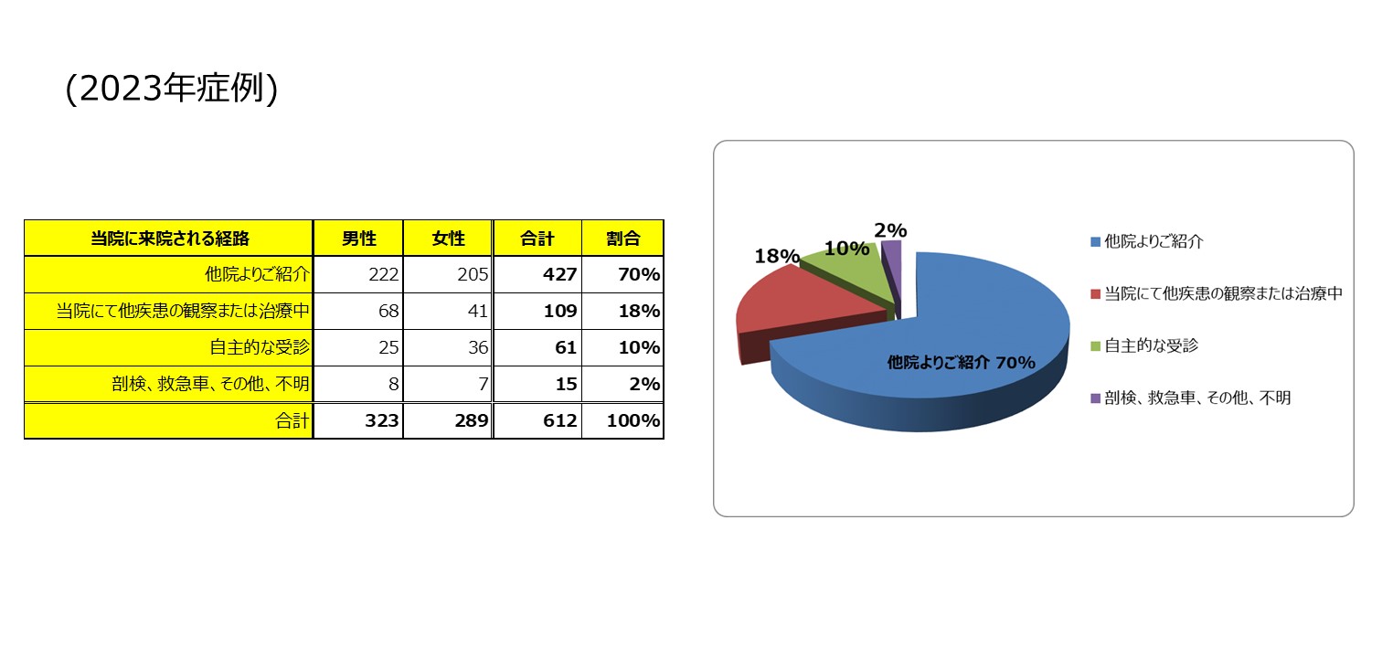 患者さまの多くが症状が出る前に、あるいは症状が軽いうちに来院・紹介を受けられていると