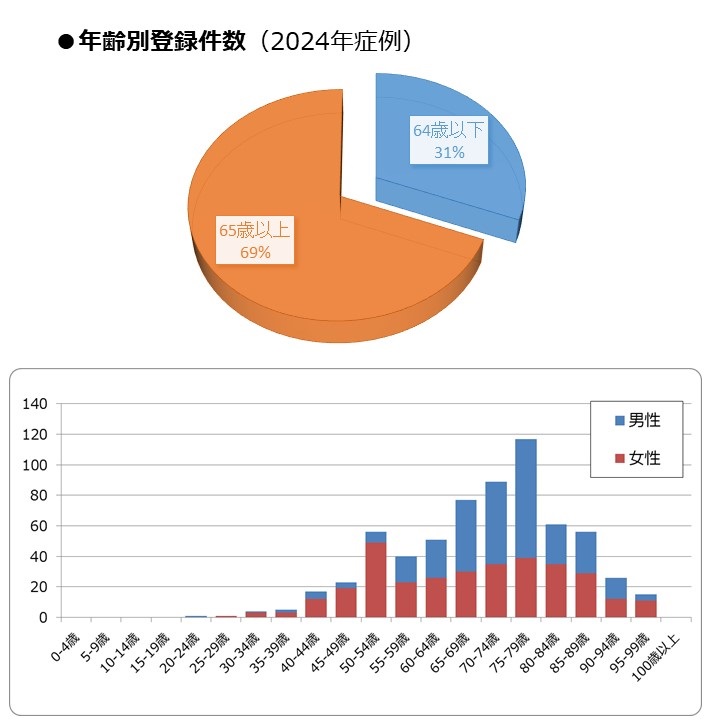 → どの症例年においても「現役世代(働く世代)」の患者さんが多いことがわかります。