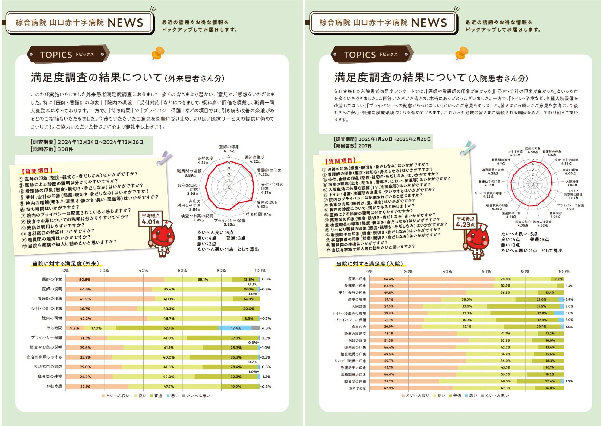 当院では、毎年患者さんをはじめ、ご来院の皆様を対象に満足度調査を行っています。